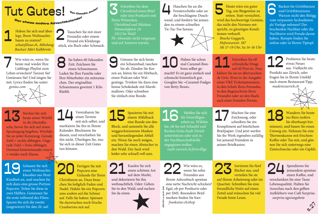 Tut Gutes Der Vollstandige Zuritipp Adventskalender Tages Anzeiger